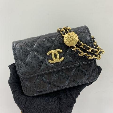 CAVIAR SKIN COIN STRAP MINI CLUTCH WITH CHAIN RFID AP2857