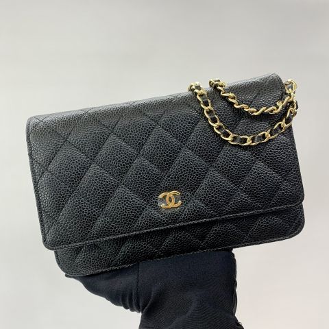 Matelassé Wallet on Chain in Caviar Skin